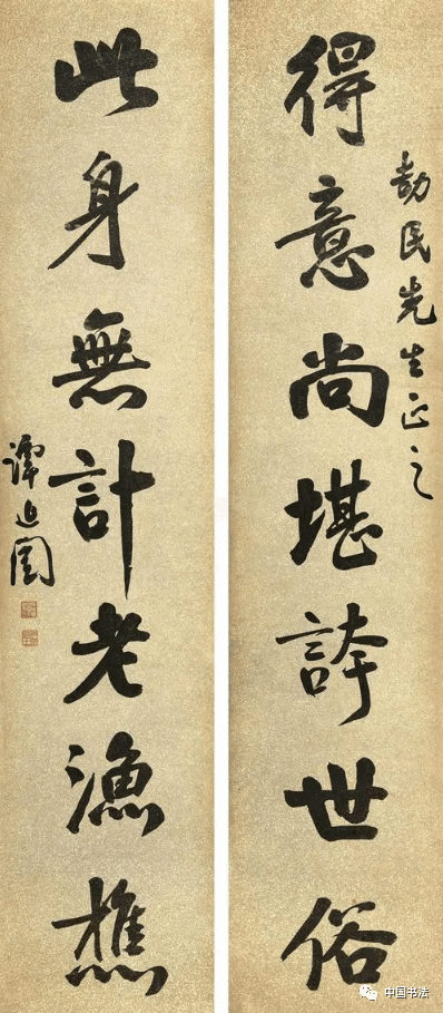 谭延闿的这幅字写的是,得意尚堪夸世俗,此身无计老渔樵。这两句诗分别出自苏轼的《和董传留别》和苏轼的《题宝鸡县斯飞阁》 。字形开张,宽博,墨色浓重,显得大气,浑厚。