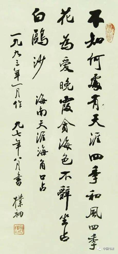 赵朴初的这幅作品,是一首自作诗,清新优雅,有书卷气。感觉第一个字墨色过重。